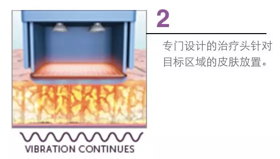 使用单极射频能量传递电流,通过皮肤和皮下组织的固有电阻产生热量。当温度到达65-70度时, 会让胶原蛋白变性, 收缩, 然后拉紧皮肤。