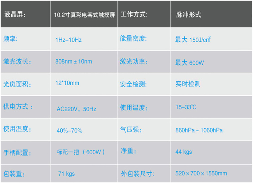 | 说明:此款808脱毛治疗仪器采用智能操作模式设计:脉宽、频率、能量为系统自动设置,同时支持参数在治疗安全值的范围内进行调节。 | 后台设置和清零建议联系厂家售后进行操作(一般无需调节) | ||||||||||||||