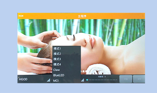 模式选择: 模式1~模式4:用于“热磁智能理疗仪” Claw:用于仿真按摩手 BlueLED:用于LED蓝光 MCI:气血理疗罐 能量值:调节1~100 定时:时间选择分钟 最后点按“开始”就可以工作了 |