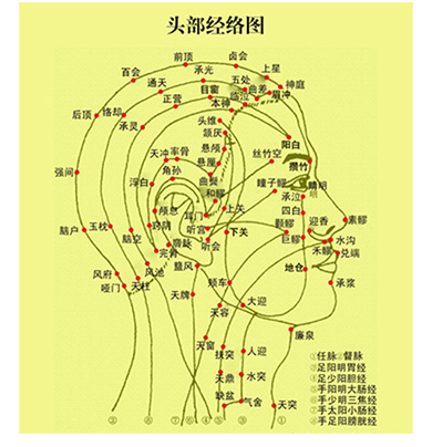 STEP1. 用气血理疗罐疏通七条经络:督脉、膀胱经、大肠、 小肠、三焦经、胆经、胃经。 STEP2.把热磁智能理疗仪戴在头上,加速血液和淋巴循环、改 善细胞缺血缺氧状态,起到活血化瘀、消炎镇痛等作用。 STEP3.手握仿真按摩手疏通颈、头部经络,头部淋巴管和淋巴 结,及穴位(见右图)。 STEP4.LED蓝光照射皮肤,杀菌消炎,润养头皮。 |