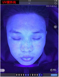 | 粉刺 深层色斑 色斑沉淀分布(色素沉着于皮肤层的深浅、色斑沉淀的分布情况) 各种皮肤问题 日晒伤害 粉刺和黑头粉刺的喀紫质 毛孔堵塞以及游离油脂分布 透过皮肤细胞的不同荧光表现与分泌物,就能辨别出难以看见或外观相似的肌肤状况。 |