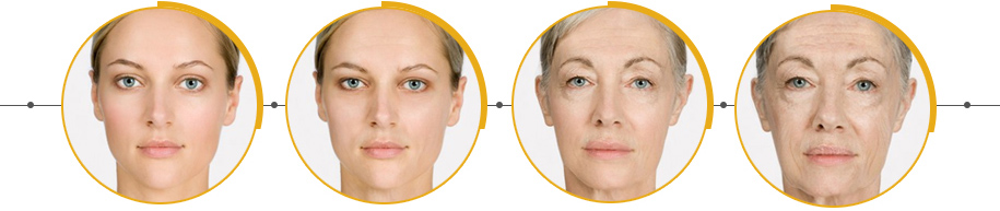 | 25岁后皮肤开始走下坡路,胶原纤维与弹性纤维开始老化,皮肤变薄、肤色变暗、弹性变差,让衰老肌肤悄然而至 | 随着胶原蛋白和透明质酸的流失,皮下脂肪组织逐渐萎缩减少,导致抬头纹、眼尾纹、眉间纹等各种皱纹出现 | 浅层脂肪下垂移位变形,脂肪垫变大,失去年轻饱满感,导致太阳穴凹陷、面颊凹陷等,面部衰老进一步恶化 | SMAS筋膜层网状纤维剧减,弹性纤维失去弹性,加上地心引力影响,导致眉下垂、眼角下垂、面颊肌肤下垂 | |||||||||||||||||||||||||||||
